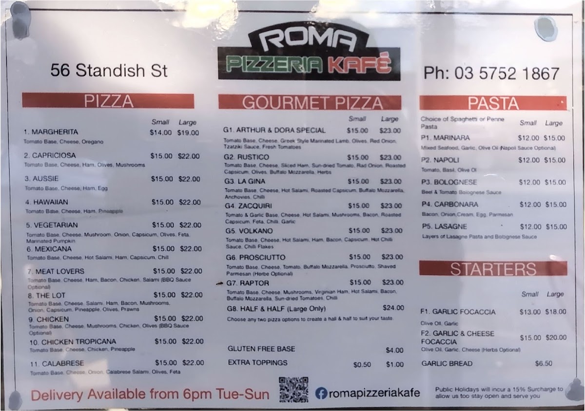 If you're in Myrtleford, don’t miss out on this gem. Whether it's a casual lunch or a cozy dinner, Roma Pizzeria Kafe promises a memorable experience filled with good food and good company.